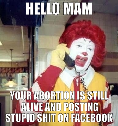 HELLO MADAM? YOUR ABORTION IS STILL ALIVE AND TALKING SHITE ON THE FOOTBALL.